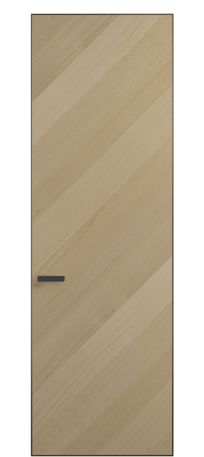 Полотно Рифт в скрытом алюминиевом коробе становится полноценным элементом декора. В коллекции представлено 9 моделей дверей в высоте до 3 метров. Рисунок раскладки шпона варьируется от простого до сложного. «Рубашка» для каждого полотна подбирается вручную по цвету, текстуре и фактуре.
