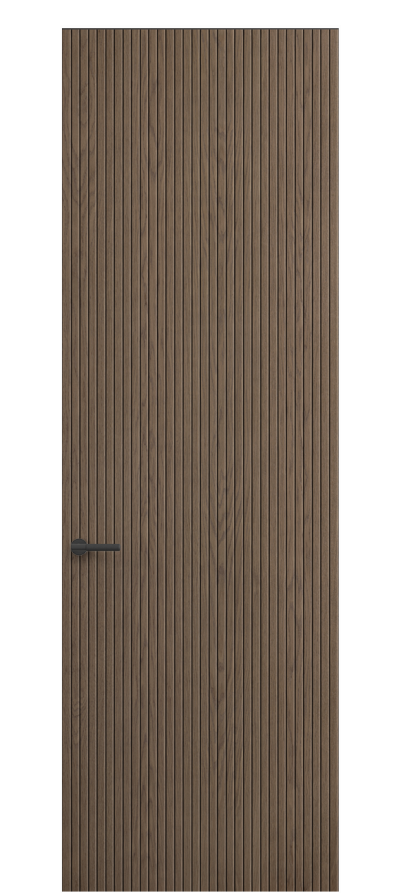 SELECT — коллекция минималистичных дверей с фрезеровкой по натуральному шпону. Рельеф на поверхности полотна создаёт игру света и тени, добавляя пространству динамичности и визуального объёма. Двери SELECT в сочетании со стеновыми панелями и мебельными фасадами, повторяющими лаконичный дизайн, создают единое стилевое решение.
