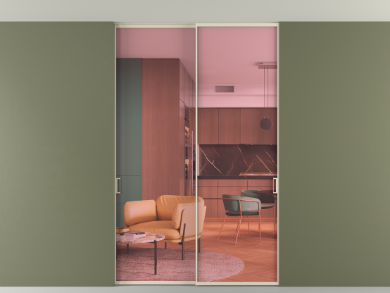 АЛПР 040.01. Алюминий бежево-серый Прозрачное розовое стекло, триплекс, 6мм